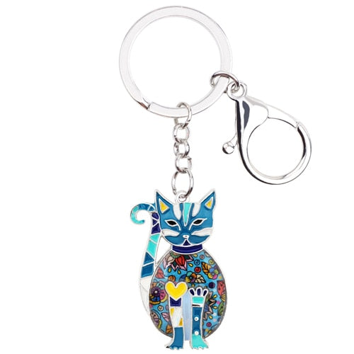 Metal Enamel Elegant Cat Key Chain